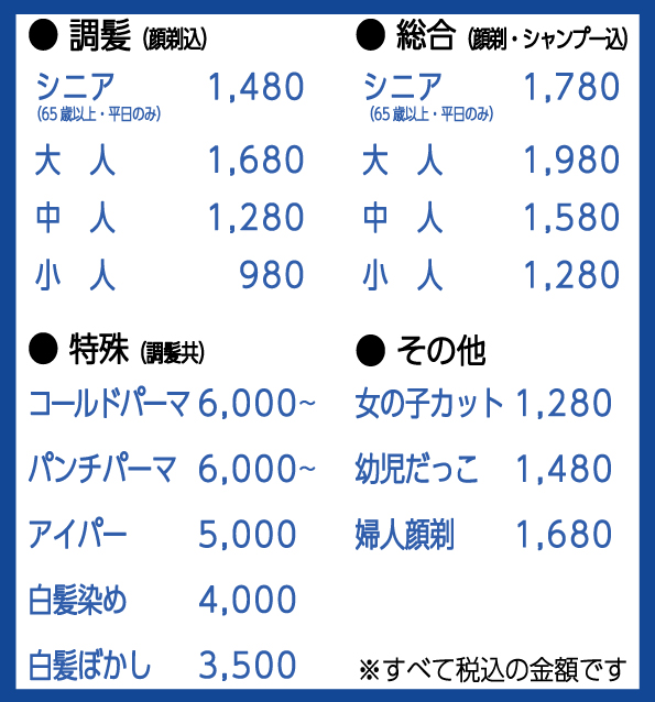 受付時間 カット 9:00〜18:30